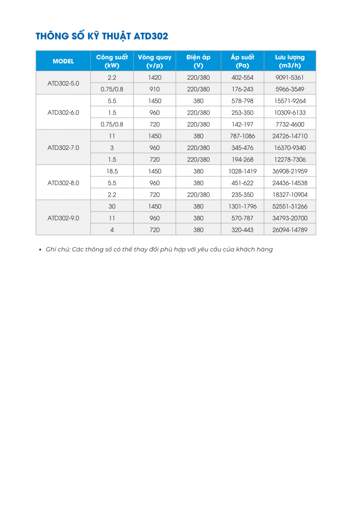 Quạt phối hợp ATD302 là loại quạt mới được thiết kế giữa quạt hướng trục và ly tâm. Sản phẩm có thiết kế khác biệt, cấu trúc nhỏ gọn, kích thước nhỏ, trọng lượng nhẹ, áp suất cao, lưu lượng lớn, tiết kiệm năng lượng, tiếng ồn nhỏ, lắp đặt thuận tiện. Quạt phối hợp ATD302 được sử dụng trong nghành công nghiệp, xây dựng dân dụng, các hệ thống thông gió, lọc bụi.