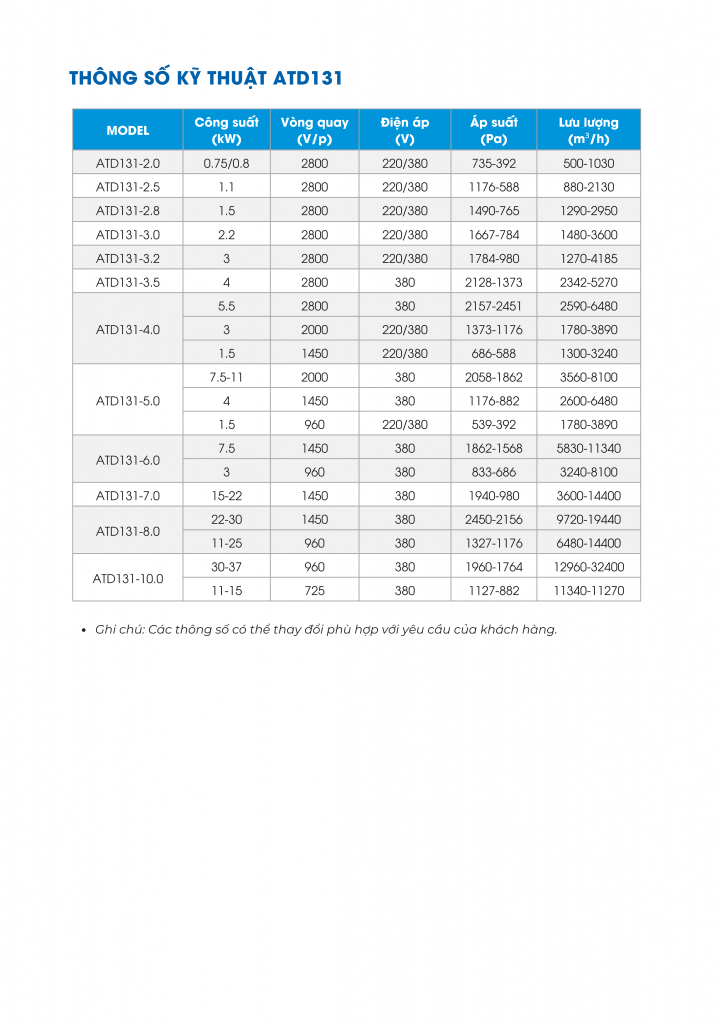 Quạt ly tâm hút bụi ATD131 được dùng để hút không khí chứa bụi, phế liệu gỗ và các chất khác. Sản phẩm cũng được sử dụng trong các hệ thống thông gió. Cánh quạt được thiết kế với các nan cong không bám bụi.